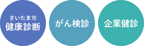 当クリニックはさいたま市特定健康診査、さいたま市がん検診等の実施医療機関です。年齢に応じた体調不良の予防、生活習慣病の予防・改善、癌(がん)の早期発見のためにもこの機会に健診・検査の受診をおすすめします。